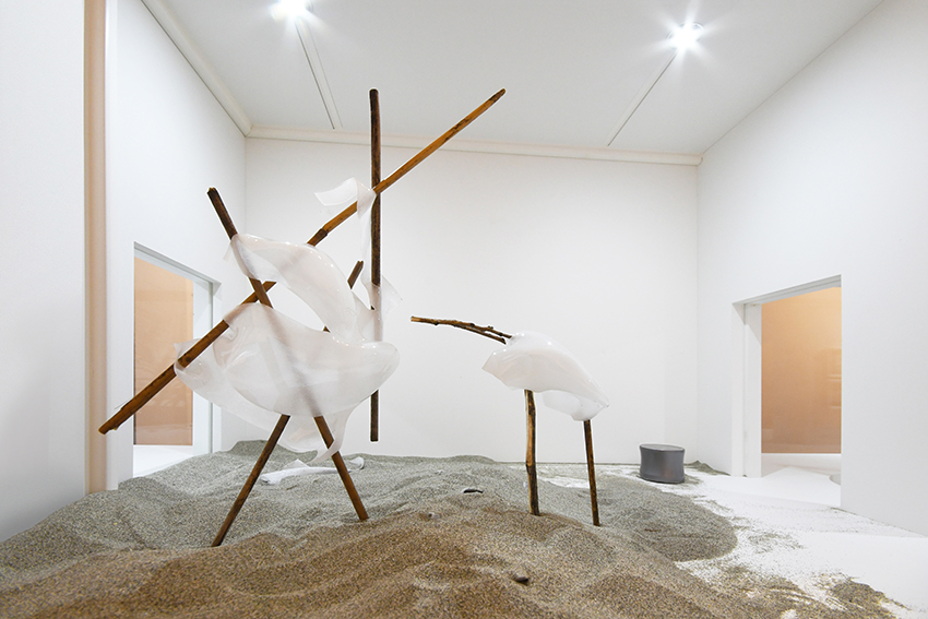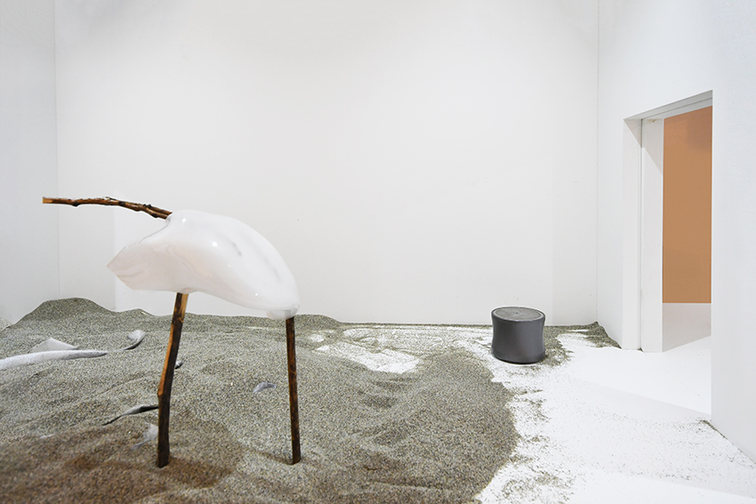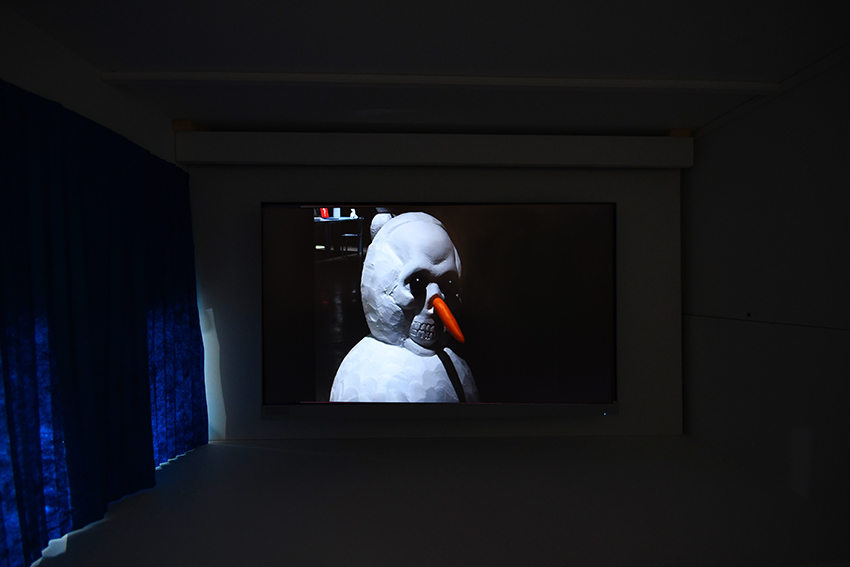 Interior and the collectors a demandé à l’artiste Le Gentil Garçon de réactiver son dispositif de musée miniature (MUMI), produit par Le voyage à Nantes pour l’exposition de l’artiste au palais Dobré en 2016. Installé dans une des chambres de la maison, cette œuvre est à mi-chemin entre un cabinet de curiosité et une maquette d’architecture d’inspiration moderniste. Des décalages par changement d’échelle et de contexte permettent une tout autre perception des œuvres, le regard des visiteur-e-s pouvant varier de la vision omnisciente d’une caméra de vidéosurveillance à celle minuscule d’une souris se promenant dans les espaces.