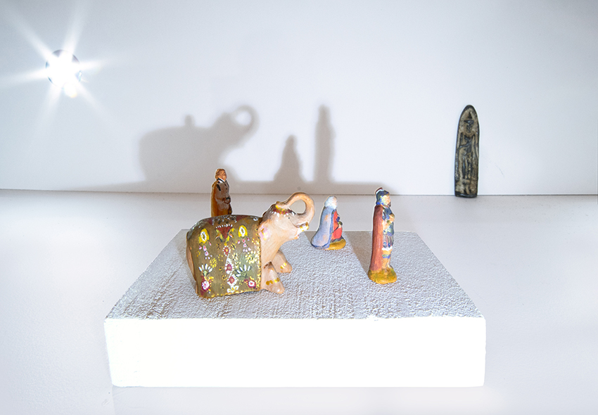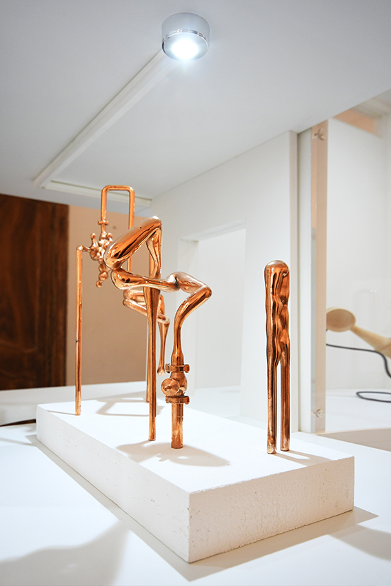 Le musée MUMI n’a pas ce rôle social mais l’art de la miniature permet un plaisir de projection dans un univers qui fascine par son aspect minuscule. C’est une façon de jouer avec les dispositifs de présentation et tous les codes muséaux. C’est aussi un système de boîte dans une boîte qui permet de contenir un musée de 3000m2 dans une chambre. Cette opération de mise en espace permet un glissement des repères, chaque œuvre change de statut. Les œuvres présentées ne tiennent compte d’aucune logique temporelle ou spatiale ce qui permet de tisser des liens moins évidents et un questionnement plus irrationnel. Le choix des artistes et des œuvres s’est fait au gré des rencontres avec les artistes, marchands d’art ou collectionneurs. À travers un regard éthéré, chacun peut faire l’expérience d’un cheminement plus personnel, d’une statuette précolombienne à des artistes contemporains en passant par des gravures de Rembrandt ou encore une statuette vaudou. Dans cette exposition, de nombreuses œuvres font référence au corps, comme représentation jusque dans sa chair mais aussi en l’impliquant dans un rituel ou une croyance, par sa présence ou son absence. Cette direction vers l’étrangeté et une dimension plus mystique ressort d’autant plus en contraste avec l’esthétique moderniste du musée.